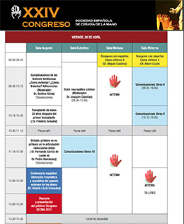 Por último, además del nombramiento del Doctor Casañas como presidente de la SECMA, el Doctor Casañas, reconocido experto en cirugía de mano participó en otras sesiones ciéntificas, resaltando sobre todo la relativa a la Artrodesis parciales de muñeca por artroscópica.