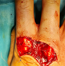 Compartimos con vosotros este caso de paciente que sufre herida en dorso de mano derecha por hacha.