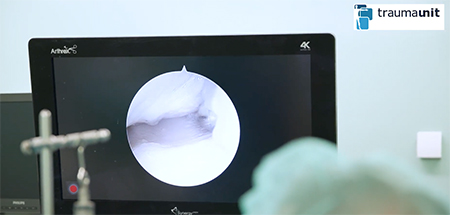Se observa mucha sinovitis, mucho tejido inflamatorio, que se distingue por su color nacarado procediendo a su limpieza con un aparato llamado mucotomo que a medida que va eliminando el tejido también lo aspira.