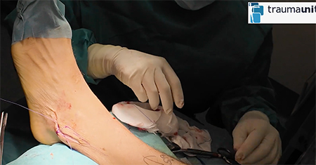 ◦ Se realiza una sutura que reproducirá el ligamento y proporcionará más estabilidad al tobillo.